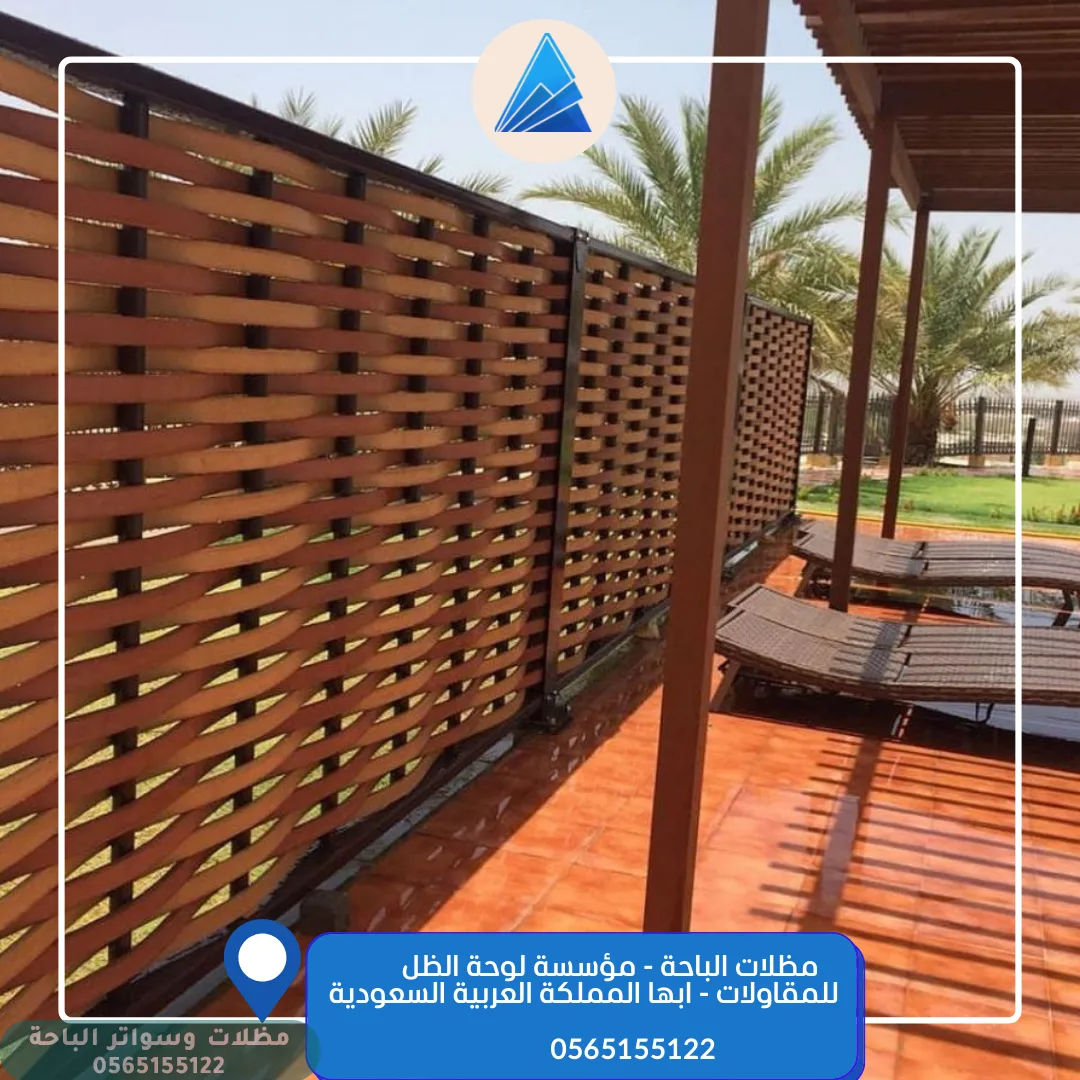 مظلات وسواتر الباحة مؤسسة لوحة الظل للمقاولات توفر لكم جميع انواع السواتر و المظلات لتغطية المسابح و الفلل و الحواجز الارضية و الاخشاب البلاستيكية .وكذلك نوفر خدمة تركيب المظلات و السواتر للبيوت و المدارس و الجامعات والاسواق والمنتزهات وجميع المرافق الحكومية والخاصة معايير ومواصفات عالية. تتميز نوعية المظلات و السواتر التي نقوم تركيبها بجودتها العالية وكفاءتها وقدرتها على مقاومة مختلف الظروف المناخية المتقلبة, نوفر المظلات و السواتر بعدة اشكال جميلة ورائعة وكذلك تصاميم عصرية وحديثة مناسبة لمختلف الاماكن وكل ذلك بأسعار منافسة و دقه عالية بالعمل و انضباط في المواعيد.د
